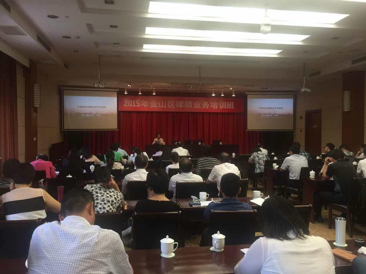 培訓班邀請了金山區法院行政庭和民二庭法官進行授課,兩位法官分別以《行政訴訟法修改及實務講座》、《公司糾紛案件相關問題解析》為題,對訴訟過程中有關律師工作實務進行了講解,并與與會律師進行了交流互動。