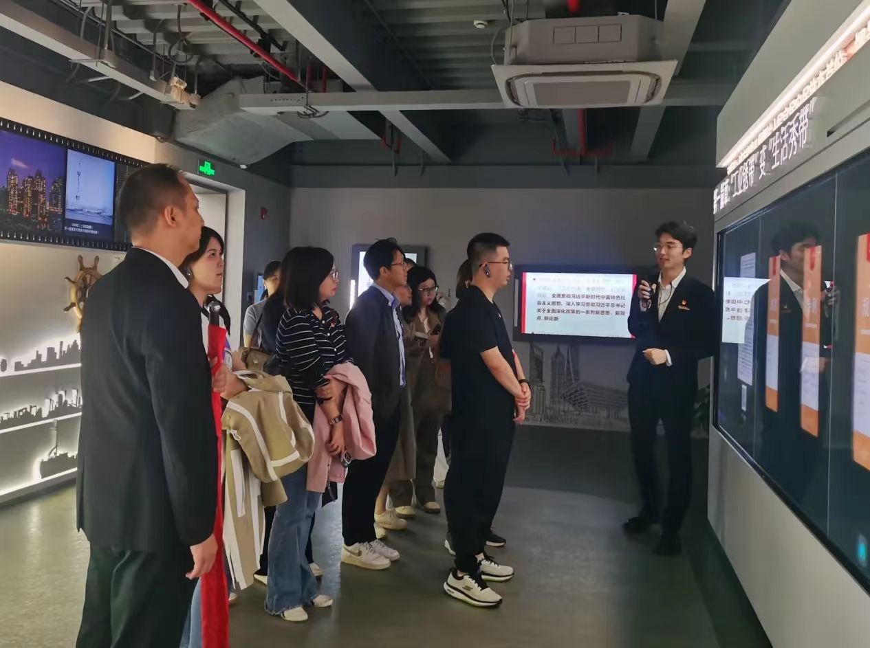 徐匯濱江規劃展示中心位于西岸智塔東塔樓45樓,總面積達2400平方米。步入徐匯濱江規劃展示中心,仿佛穿越至未來之城。通過全面細致的實景講解、區域沙盤、“一港一谷一城一心”產業組團模型的演示以及震撼視覺的視頻展播,向黨員律師們全面展示了徐匯濱江從“工業銹帶”轉變為“生活秀帶”、“科創繡帶”的華麗蛻變歷程、最新建設成果和規劃愿景;傳媒港的創意涌動,數字谷的科技脈動,金融城的資本風云,熱力秀場的藝術狂歡,生命藍灣的科研創新,數智中心的智慧光芒,共同編織出一幅現代化國際大都市卓越水岸的炫彩多姿的畫卷,黨員律師們親眼目睹了徐匯濱江著力打造出的數字經濟、生命健康、文化創意、現代金融“四核驅動”的國際級產業集群,深刻感受到了這座社會主義現代化國際大都市的卓越水岸的魅力。