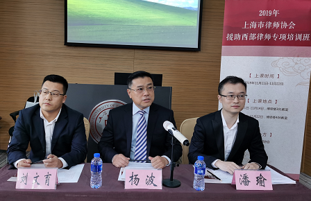 2019年11月11日,上海市律師協會2019年援助西部律師專項培訓班在上海財經大學博思樓開班。本期培訓班邀請了新疆、甘肅、青海、新疆生產建設兵團四地律師協會共51位西部地區律師到滬參訓。上海律協副會長楊波、副秘書長潘瑜,青海律協副秘書長劉文育出席培訓班開班儀式,上海律協業務部主任陳一沁主持。