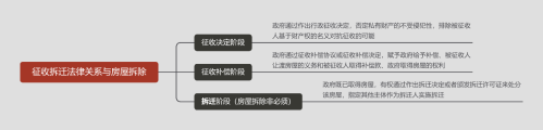 第二個階段是征收補償階段,政府通過征收補償協議或征收補償決定,賦予政府給予補償、被征收人讓渡房屋的義務和被征收人取得補償款、政府取得房屋的權利。
