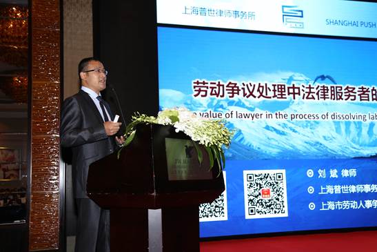 第二位演講嘉賓是普世所合伙人、上海市勞動人事爭議仲裁委員會仲裁員劉斌律師,他以“勞動爭議處理中法律服務者的價值”為題與在座嘉賓進行分享。