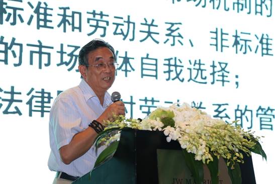 第一位演講嘉賓是董保華教授,演講主題是“勞動合同法十大失衡的再闡述”。董保華教授首先指出改革開放的成功說明我們做對了什么,當前的經濟下行說明我們做錯了什么。中央目前提出的“降成本的重點是增加勞動用工的靈活性”已經預示著《勞動合同法》進入修訂議程。目前,國家對于企業用工靈活性問題正在反思。