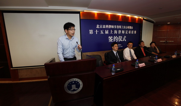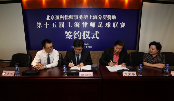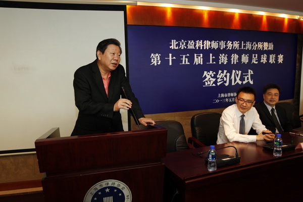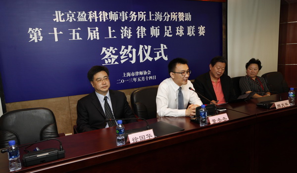 2013年5月14日下午2點,北京盈科(上海)律師事務所贊助第十五屆上海律師足球聯賽簽約儀式在上海市律師協會報告廳順利舉行。