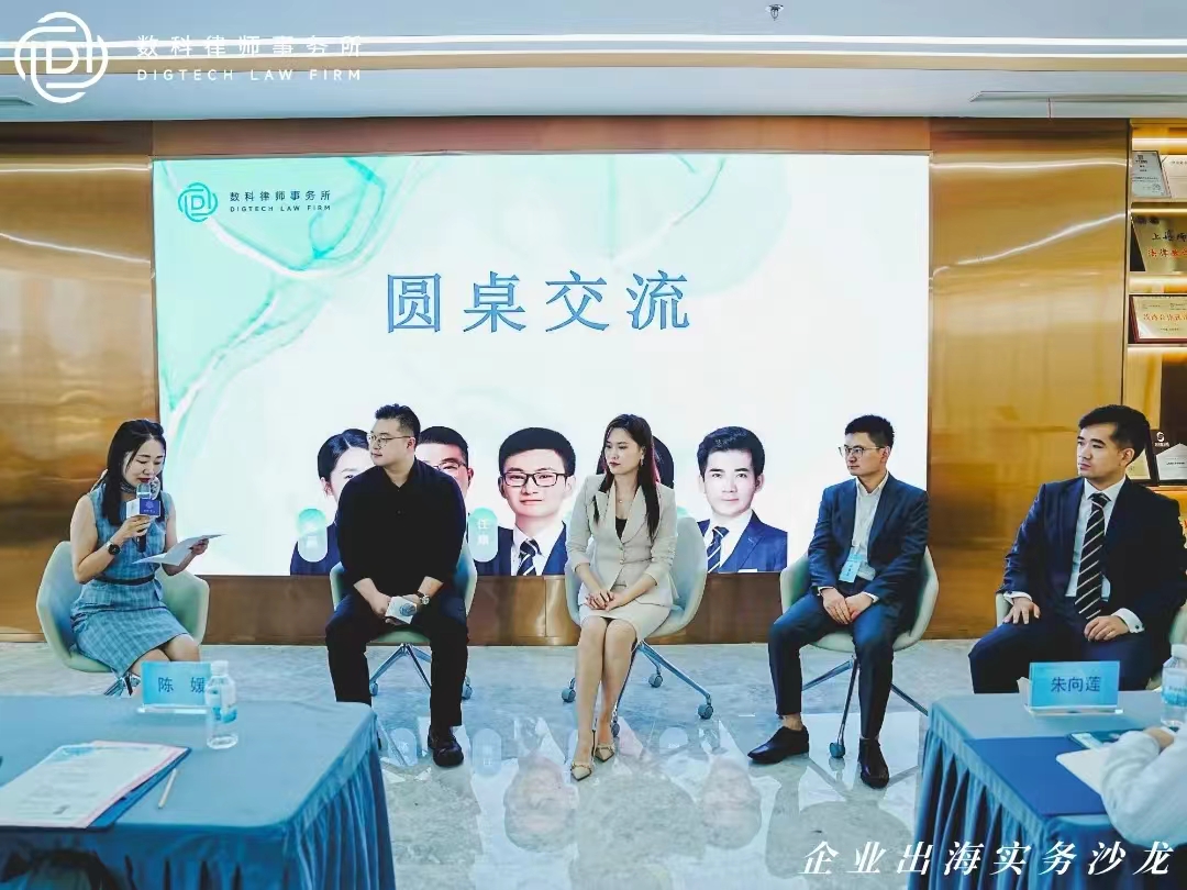隨后的圓桌討論環節,數科律所陳晨律師主持了討論,她以一段精煉的開場白為與會人員鋪設了討論的基調。北京盈科(上海)律師事務所合伙人沙俊、浙江京衡(上海)律師事務所國際法律部主任經磊、上海數科律師事務所合伙人任康以及鄭啟敏律師紛紛圍繞企業出海的相關議題展開了熱烈的探討和交流。通過細致關鍵的提問與針對性的解答,充分調動起了與會人員間的交流熱情,現場氣氛熱烈。