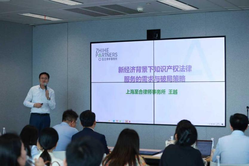 上海至合律師事務所合伙人王越律師圍繞《新經濟背景下知識產權法律服務的需求與破局策略》主題展開分享。他首先結合自身職業經歷,分享其在法律領域從業的感悟與心得;隨后,王越律師就“獨立律師與團隊律師的職能差異”“AI是律師的時代紅利還是時代困境?”等問題分享了獨特見解。他認為,知識產權領域是青年律師建立絕對優勢和比較優勢的理想賽道。只有將專業領域做到細分,才能在競爭中形成不可替代的專業標簽。