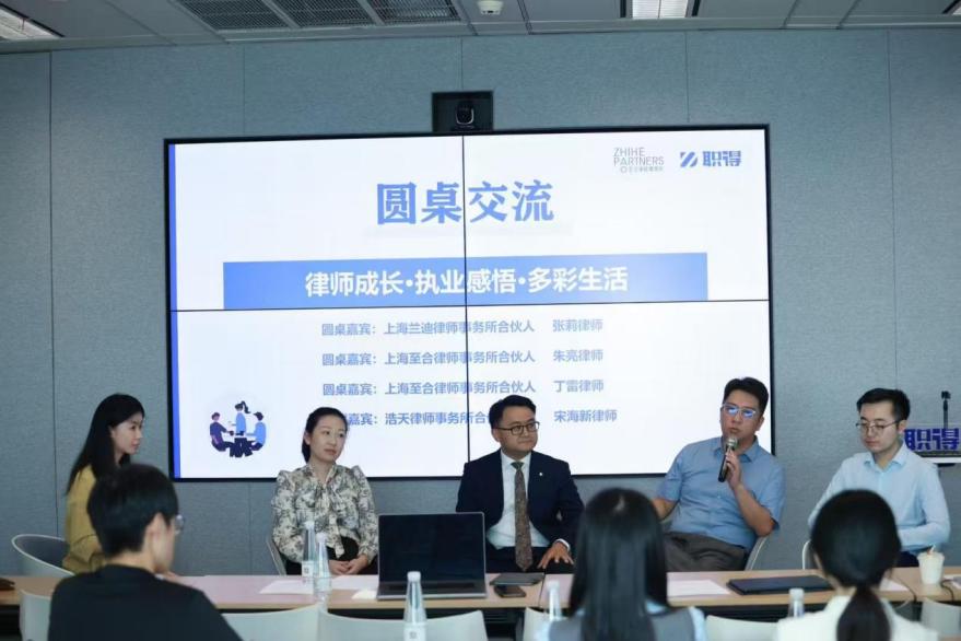 圓桌會談環節特邀上海蘭迪律師事務所合伙人張莉律師、上海至合律師事務所合伙人朱亮律師、上海至合律師事務所合伙人丁雷律師、浩天律師事務所合伙人宋海新律師擔任與談嘉賓,圍繞“律師成長”“執業感悟”“多彩生活”三大議題,開展真誠、深入、多維度的交流研討。