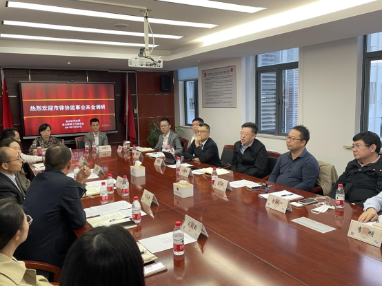 會(huì)上,沈人類主任從金山律師整體規(guī)模、業(yè)務(wù)發(fā)展、青年律師的培養(yǎng)、參與社會(huì)公益等方面向監(jiān)事會(huì)一行詳細(xì)介紹了金山律工委開(kāi)展的工作。