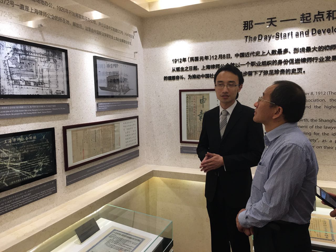 5月25日下午,山東省律協黨委專職副書記張良慶、副秘書長李鵬以及部分山東省律協律師代表參觀了上海律師公會舊址陳列館。上海律師公會舊址陳列館新聘任的青年律師講解員候浩彥律師為到訪來賓做了深入細致的講解。大家了解上海律師公會的起源與發展,以及上海律師為維護社會公平正義、司法主權獨立在中國近現代史、法治史上留下的濃墨重彩的事跡。張書記表示,陳列館雖然建立在上海,但對全國律師都具有深遠的意義,這里能夠全面的了解律師的發展史,可以說是律師的精神家園。這些文物與史料都是律師行業珍貴的歷史文化遺產,值得所有的律師、法律從業者共同瞻仰和學習。