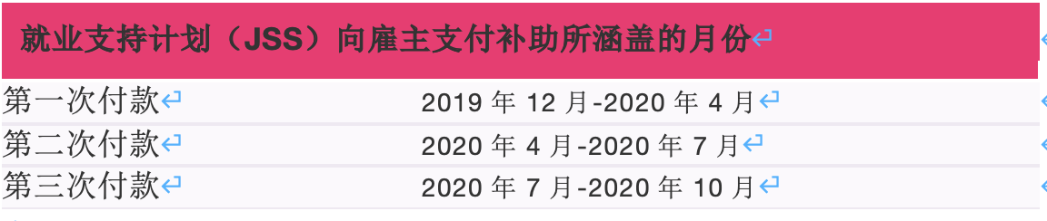 雇主將分別在2020年4月、7月和10月收到共計三筆JSS付款,如下表所示: