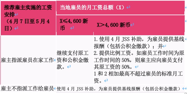 此外,對于其他雇主,建議不要采取裁員或延長無薪假期的方式降低成本支出。建議雇主利用2020年4月的JSS補助(一個月工資的75%)支付阻斷期間當地雇員的工資和雇主的公積金繳納份額。