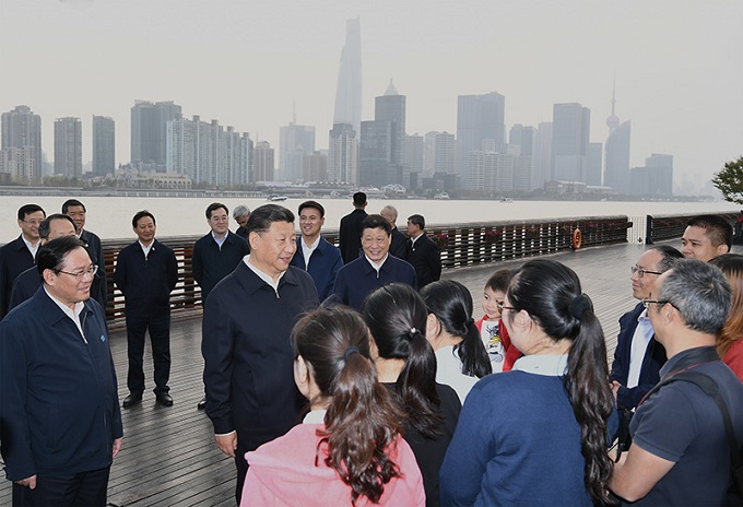 11月2日至3日,習近平在中共中央政治局委員、上海市委書記李強和市長應勇陪同下,深入上海楊浦濱江、古北社區,就貫徹落實黨的十九屆四中全會精神、城市公共空間規劃建設、社區治理和服務等進行調研,同基層干部群眾親切交流。