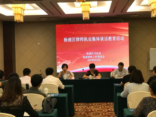 8月16日下午,楊浦區司法局召開全區律師執業集體談話教育活動,專題學習傳達《楊浦區律師執業談話教育制度(試行)》。區司法局黨委書記、局長陸靜,律公科科長童輝,楊浦律工委主任厲明參加了此次活動,會議由童輝科長主持。來自我區50余名新首次執業、重新執業和從外地、外區轉入執業律師參加了本次活動。