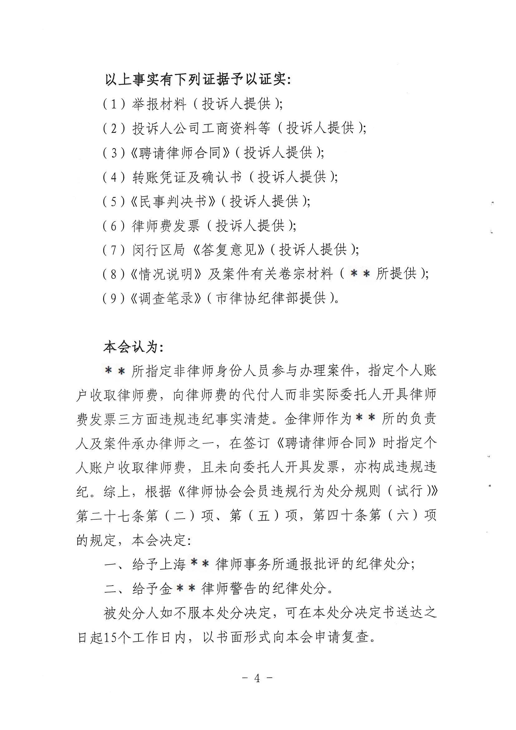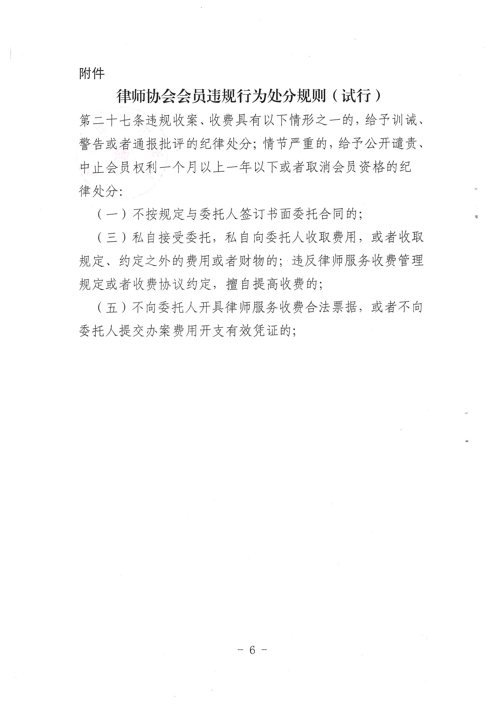 (三)私自接受委托,私自向委托人收取費用,或者收取規定、約定之外的費用或者財物的;違反律師服務收費管理規定或者收費協議約定,擅自提高收費的;