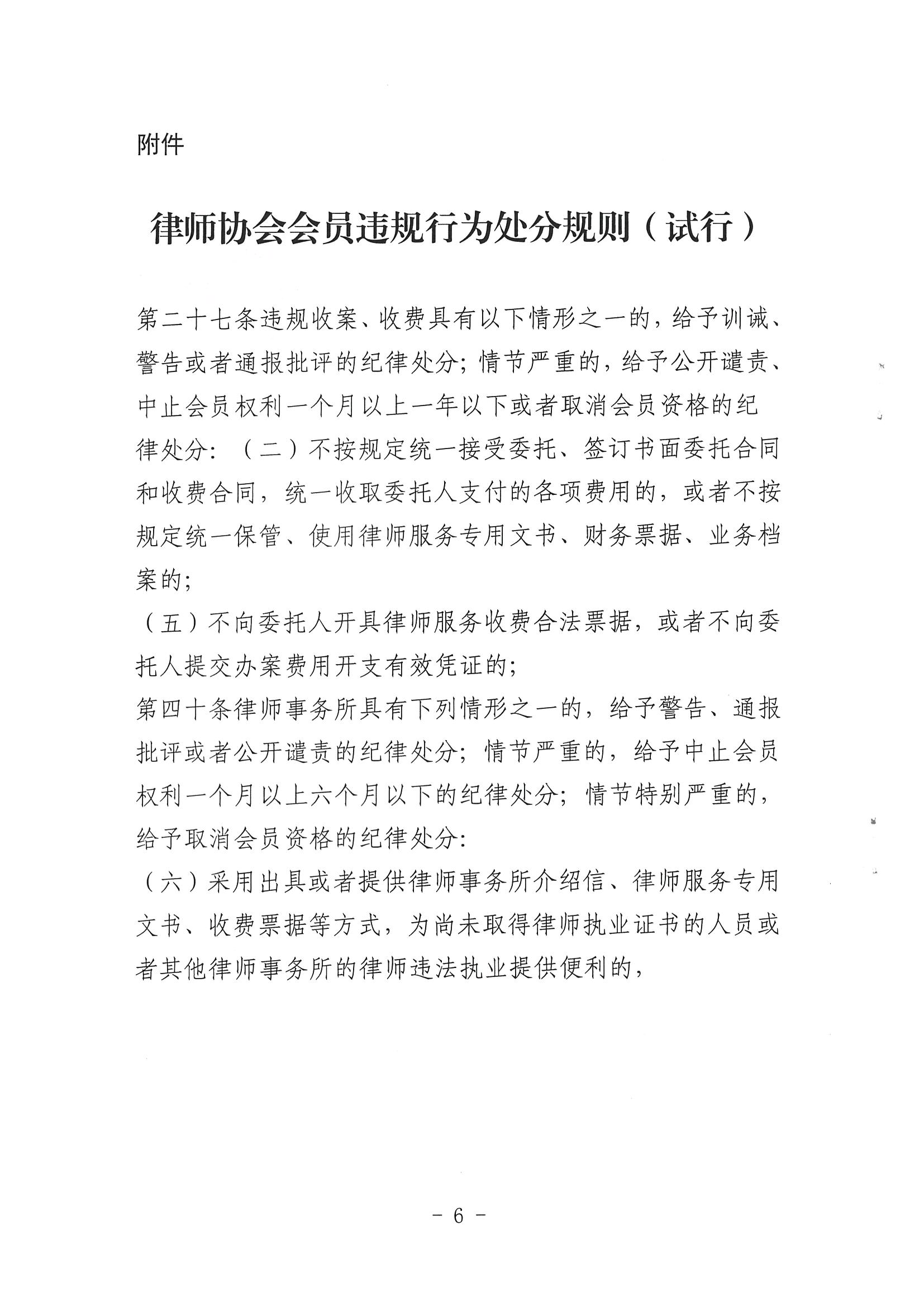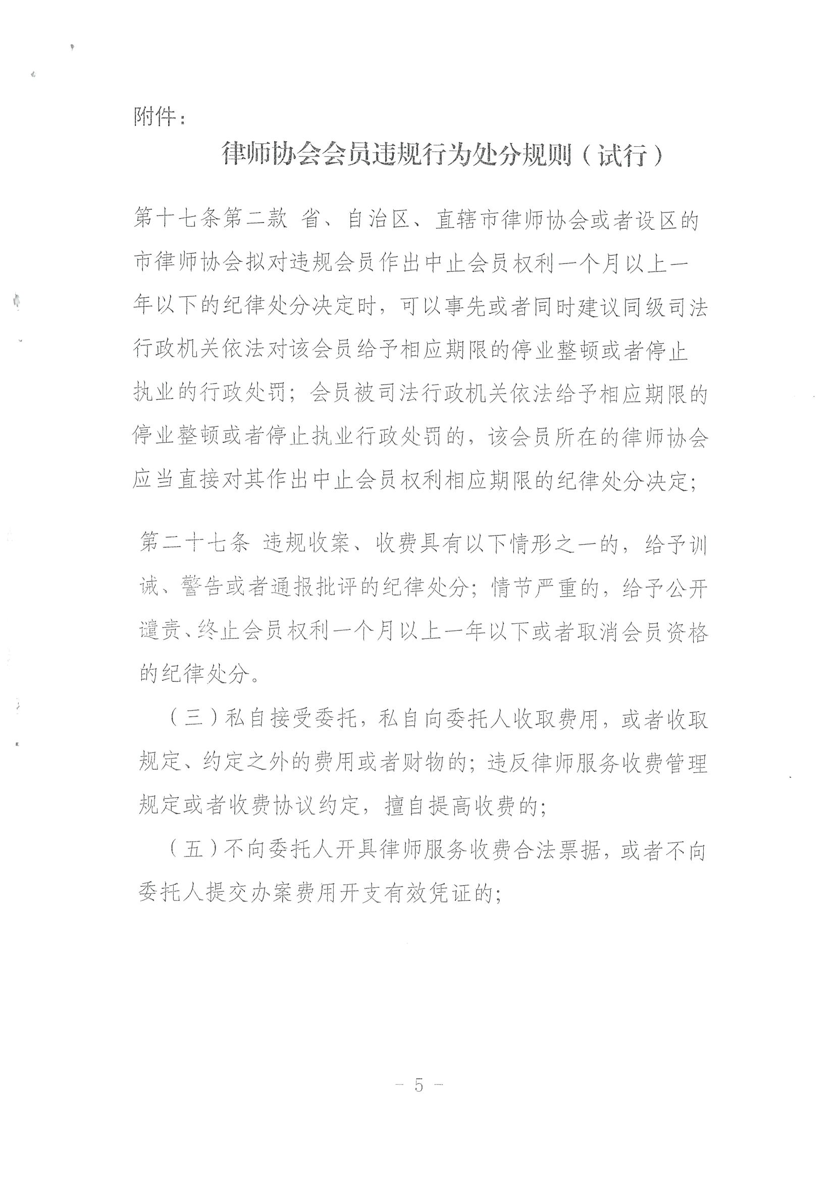 另根據《處分規則(試行)》二十八條的規定,假借法官、檢察官、仲裁員以及其他工作人員的名義或者以聯絡、酬謝法官、檢察官、仲裁員以及其他工作人員為由,向當事人索取財物或者其他利益的,給予公開譴責或者中止會員權利三個月以上六個月以下的紀律處分。