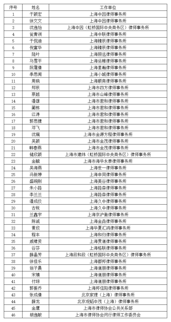 本次“暖冬春運,青律先行——上海地鐵豫園站、虹橋火車站志愿服務”志愿者名單