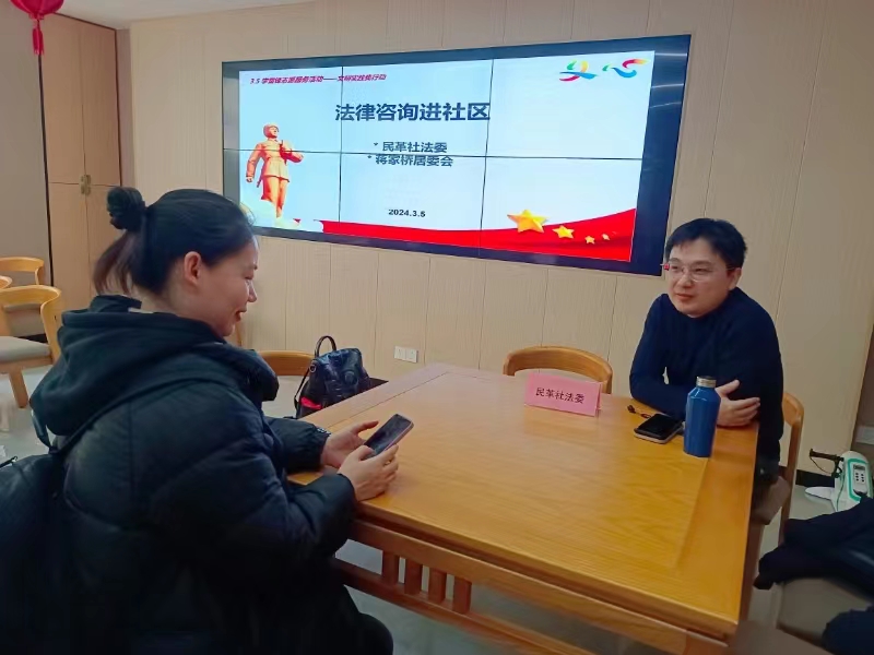 上海市光大律師事務所高志磊律師在蔣家橋居委會為社區居民提供公益法律咨詢服務。