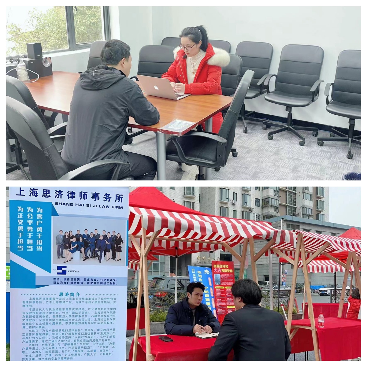 上海思濟律師事務所何泯萱、陳飛兩位律師分別在廣紀路838號A棟、黃浦區綠地名人坊提供公益法律咨詢服務。