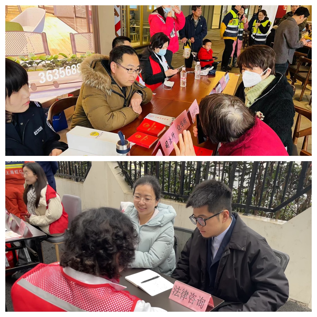上海至合律師事務所沈靜、俞敏、周杰等律師在白玉蘭廣場提供現場公益法律咨詢服務。