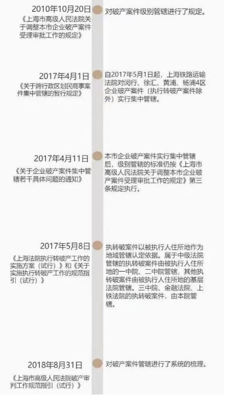 上海市高院就破產(chǎn)案件管轄曾發(fā)布《關(guān)于調(diào)整本市企業(yè)破產(chǎn)案件受理審批工作的規(guī)定》、《關(guān)于跨行政區(qū)劃民商事案件集中管轄的暫行規(guī)定》等多個(gè)個(gè)規(guī)定,《調(diào)整集中管轄通知》并不廢止之前的規(guī)定,當(dāng)然,兩者發(fā)生沖突時(shí),以《調(diào)整集中管轄通知》為準(zhǔn)。