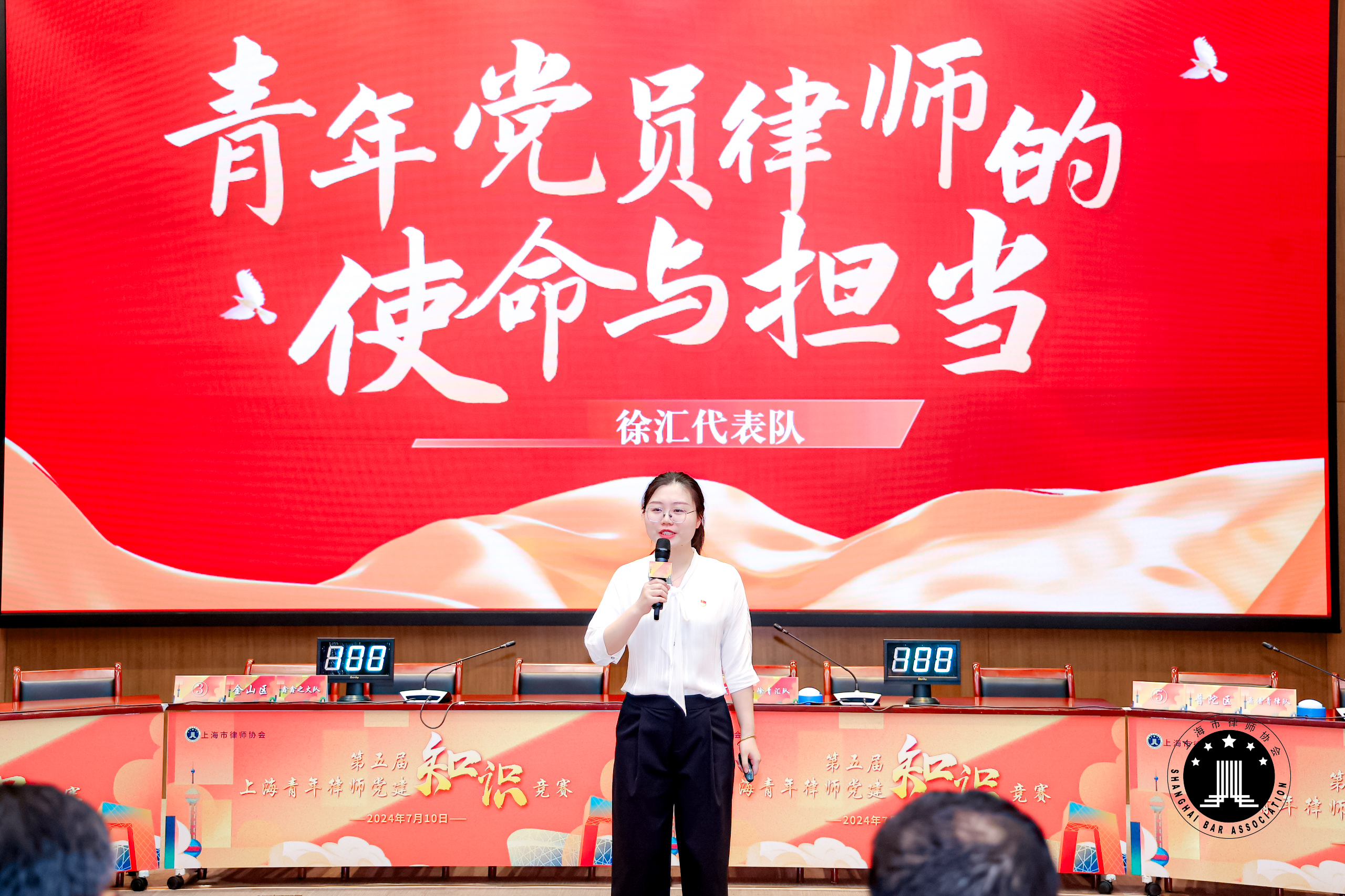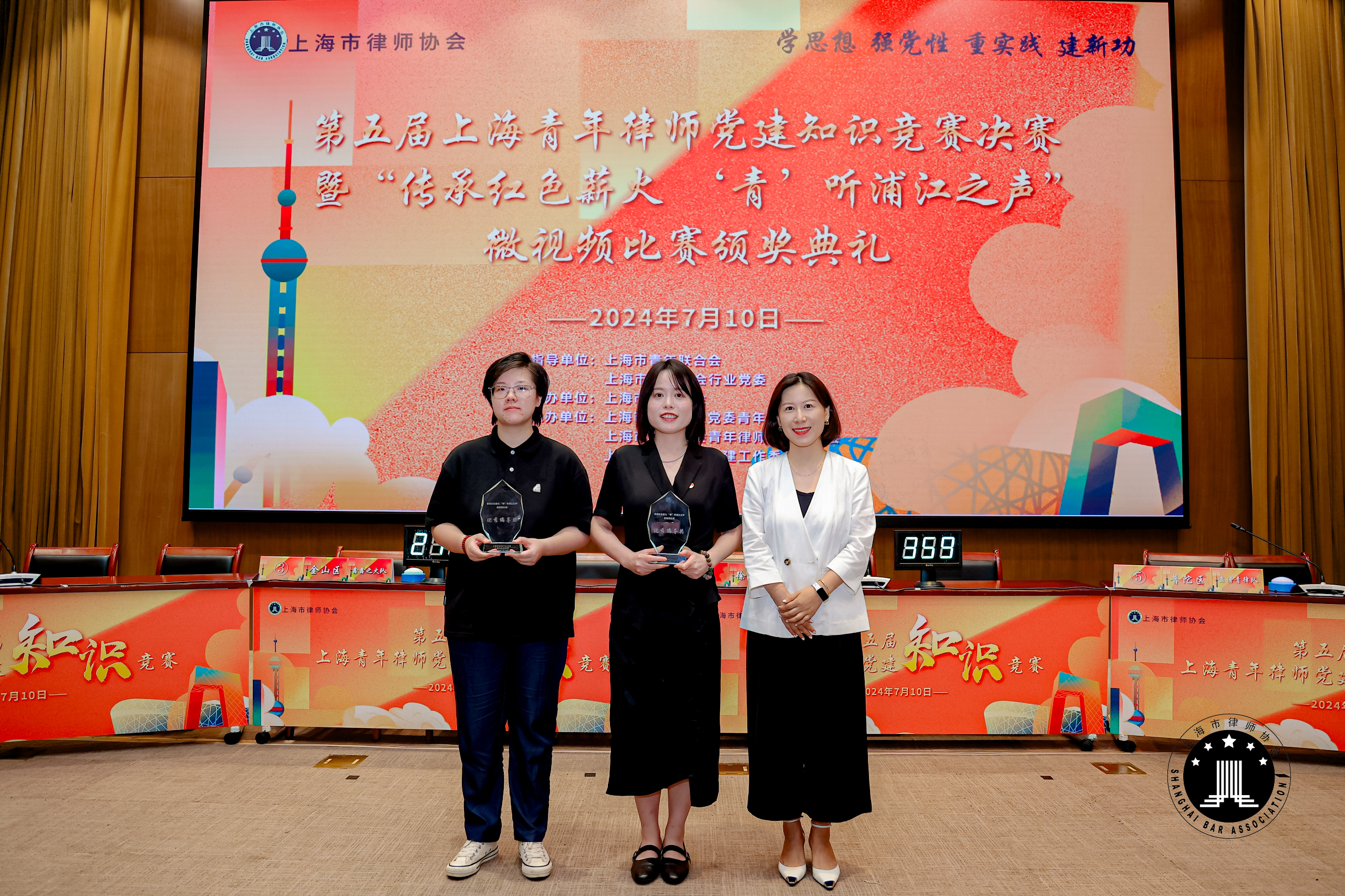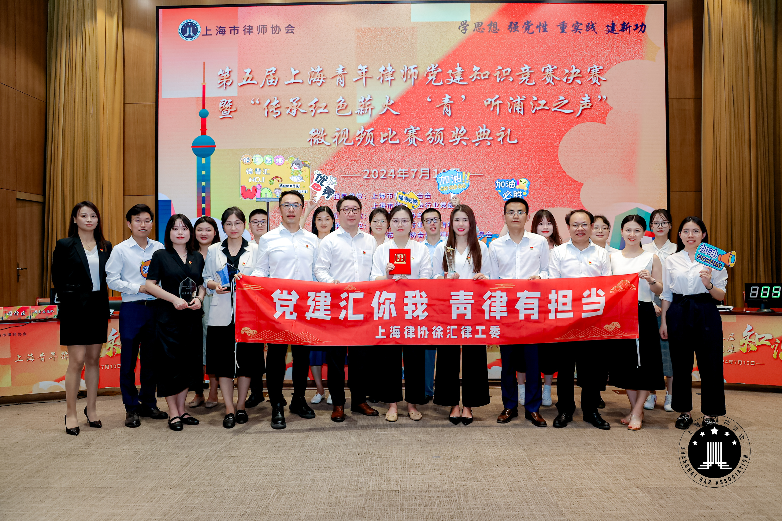 2024年7月10日,由上海市律師行業黨委、上海市律師協會聯合舉辦的“第五屆上海青年律師黨建知識競賽”決賽暨“傳承紅色薪火‘青’聽浦江之聲”微視頻比賽頒獎典禮在上海市司法局舉行,上海市司法局律師工作處處長葉斌、上海市律師協會副會長陸胤、上海市律師協會秘書長唐潔等領導出席,徐匯區司法局黨委書記、局長左靜鳴等區局領導應邀出席,各區律工委、青年律師黨員等100余人參加。