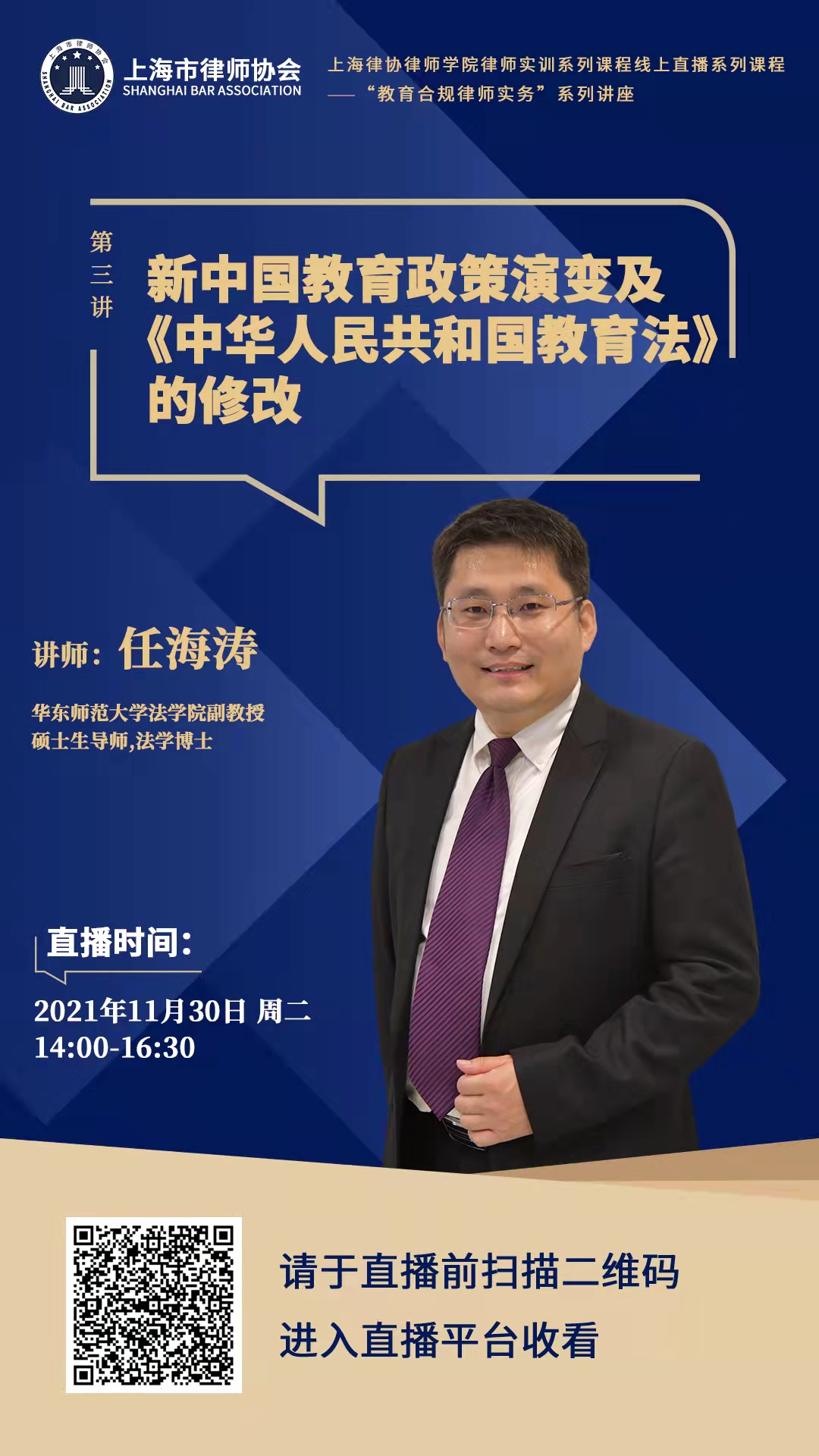 為幫助指導本市律師提高相應領域的執業技能,上海律協法律合規業務研究委員會、政府法律顧問業務研究委員會、行政法業務研究委員會和教育業務研究委員會聯合舉辦“教育合規律師實務系列講座”,邀請教育法領域的相關專家學者、實務工作者就教育合規相關實務問題作專題講座,具體安排如下: