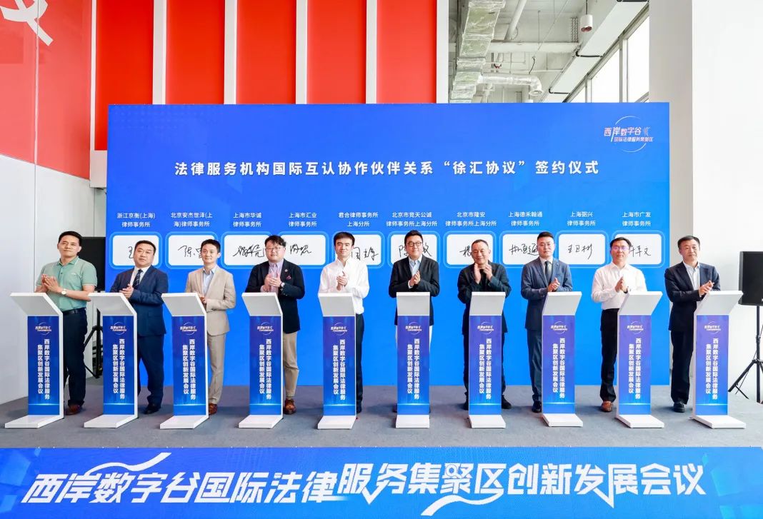 會(huì)議聚焦進(jìn)一步推進(jìn)西岸數(shù)字谷國(guó)際法律服務(wù)集聚區(qū)創(chuàng)新發(fā)展,提升徐匯法律服務(wù)業(yè)品牌影響力和國(guó)際競(jìng)爭(zhēng)力,推動(dòng)上海國(guó)際法律服務(wù)中心建設(shè)這一主題,創(chuàng)新推出全市首個(gè)法律服務(wù)機(jī)構(gòu)國(guó)際互認(rèn)徐匯協(xié)議,舉辦徐匯區(qū)國(guó)際商事調(diào)解中心和知識(shí)產(chǎn)權(quán)調(diào)解中心揭牌儀式,并啟動(dòng)涉外法治高端人才培育實(shí)踐“雙基地”合作。