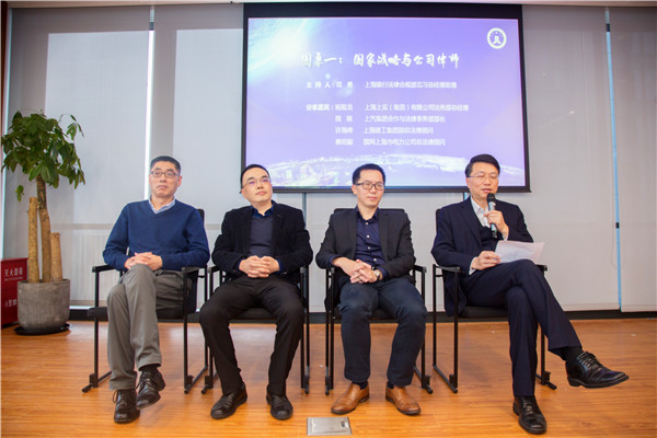 此次沙龍活動分為兩部分,第一部分圓桌分享的內容為“公司律師在國家戰略實施中的作為和使命”,由上海銀行法律合規部見習總經理助理項勇主持,由國網上海市電力公司總法律顧問唐明毅、上海上實(集團)有限公司法務部總經理楊殷龍、上汽集團合作與法律事務部部長周祺、上海建工集團副總法律顧問許海峰作為分享嘉賓。各位嘉賓分別從所在企業實際出發,用一個個生動的例子與大家分享了國有企業公司律師的責任擔當、企業在踐行“走出去”國際化戰略、長三角一體化戰略和“一帶一路”等重大項目工程中發揮的作用以及信息化時代下公司律師的定位和使命。