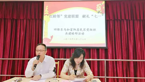 6月28日下午,上海四維樂(lè)馬黨支部與富陽(yáng)居民區(qū)黨總支在居民區(qū)會(huì)議室召開(kāi)了“‘紅睦鄰’黨建聯(lián)盟 獻(xiàn)禮七一”主題活動(dòng),楊浦區(qū)司法局副局長(zhǎng)唐明祥、四維樂(lè)馬律師事務(wù)所黨支部書(shū)記王桂喜、富陽(yáng)居民區(qū)干部和全體黨員數(shù)十人參加此次活動(dòng)。
