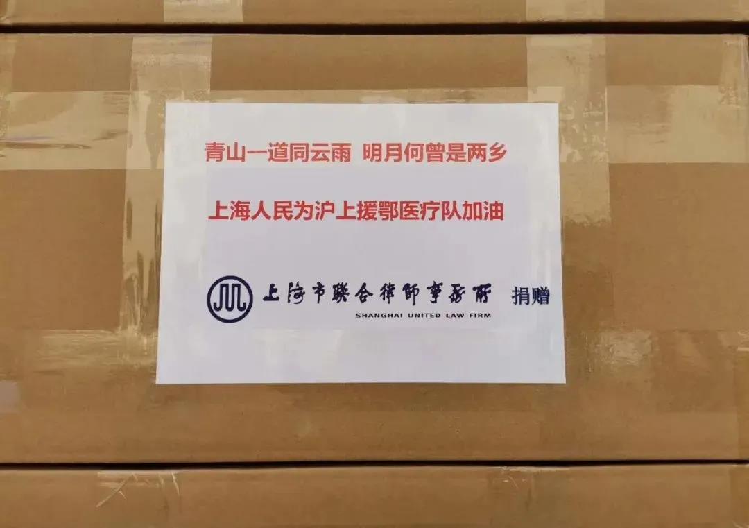新冠肺炎疫情牽動著上海市聯合律師事務所全體律師的心。在號召全體律師用實際行動支援抗疫,向事務所全體成員發起捐款倡議的同時,聯合所發動全所律師的資源,在國內外尋找符合一線抗疫需要的醫用物資。經過不懈努力,終于定向采購到1,000件符合國標的醫用防護服。為確保每一件防護服都用到實處、送到需要的人手上,聯合所決定將1,000件防護服定向捐贈給復旦大學附屬華山醫院、中山醫院援鄂醫療隊。3月7日,該批防護服通過醫院專用物資通道送往武漢。二十五箱捐助物資上印有“青山一道同云雨,明月何曾是兩鄉——上海人民為滬上援鄂醫療隊加油”。