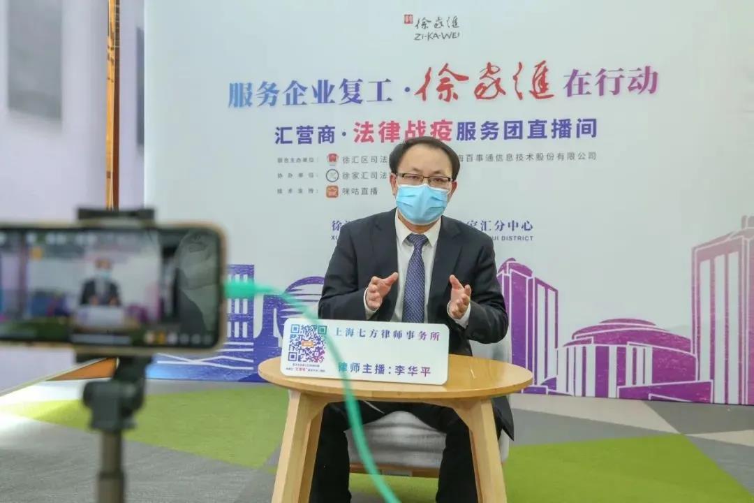 徐匯區為進一步助力企業的復工復產,集中為企業關心的法律問題答疑解惑,3月11日,徐匯區司法局作為聯合主辦單位,舉辦了“法律戰疫直播間”系列活動。活動針對前期企業提出的共性的、棘手的法律問題,通過直播平臺進行集中講解和答疑。第一期直播邀請到了上海七方律師事務所主任李華平、上海市信本律師事務所主任高興發兩位律師,分別就企業復工復產期間的企業勞動關系處理實務、以及疫情防控期間商業用房承租人能否主張減免租金等方面做主題直播。直播過程中,律師還對觀眾在彈幕中的提問進行現場互動答疑,兩次直播共吸引了6.1萬人觀看。