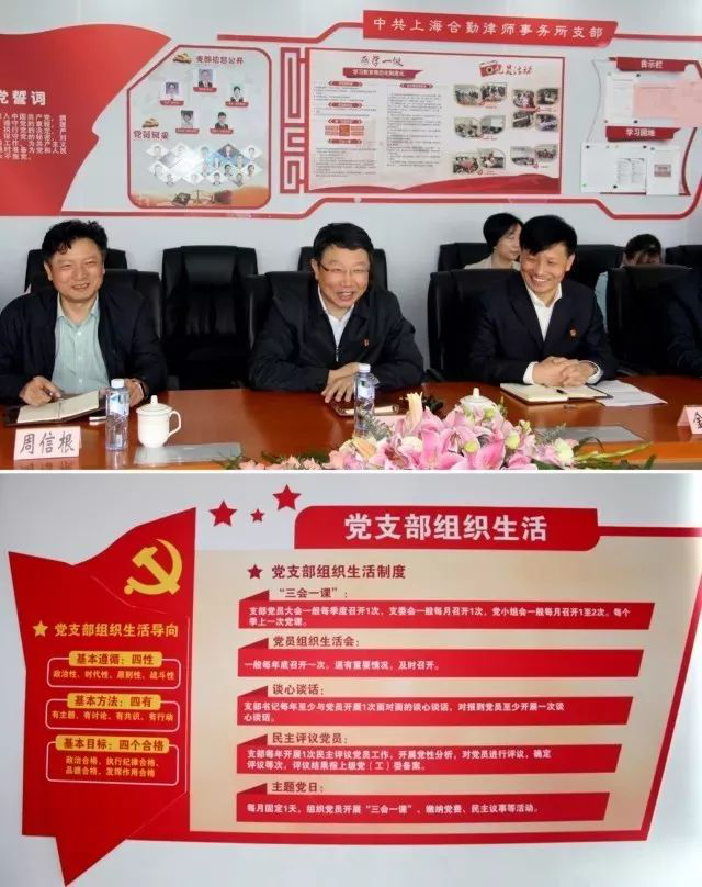 2017年10月19日,中組部組織二局副巡視員謝玉峰,組織二局四處調研員、副處長周勇在市委組織部部務委員、組織一處處長楊小菁、組織一處副處長戴濤及市司法局有關同志陪同下,分別走訪調研了上海李小華律所、國浩律師(上海)事務所、上海合勤律師事所以及閔行律師黨建服務中心,并召開了兩個座談會,專題調研上海律師行業黨建工作,上海16個區的律師行業黨建示范點支部書記或負責人參加座談。
