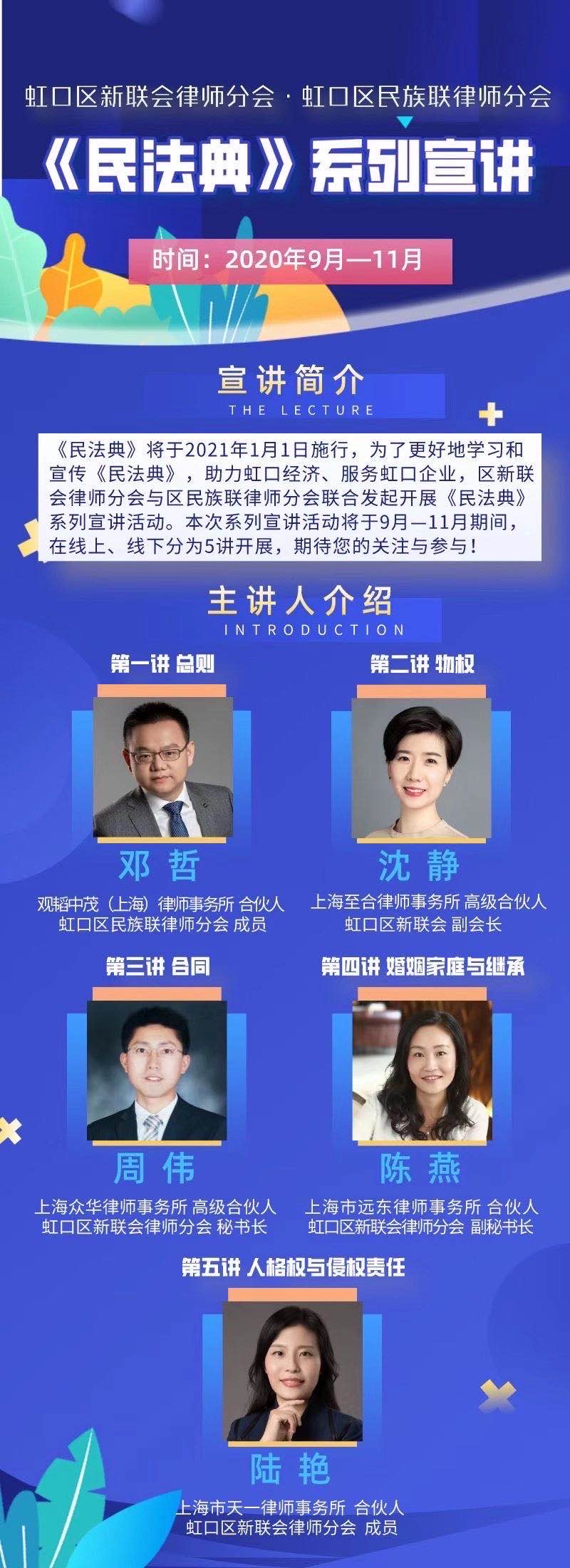 虹口區(qū)新聯(lián)會(huì)律師分會(huì)、虹口區(qū)民族聯(lián)律師分會(huì)聯(lián)合發(fā)起《民法典》系列宣講活動(dòng)
