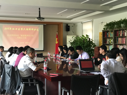 10月1日起,最高院、最高檢出臺的《關于辦理虛假訴訟刑事案件適用法律若干問題的解釋》正式實施,文中對于民事訴訟中、訴訟代理人構成虛假訴訟的共同犯罪的情形作出了明文規定。為進一步引起每一位律師的重視,2018年10月26日下午,2018年度虹口區第六期律師沙龍特邀上海眾華律師事務所高級合伙人顧家平律師結合自身經驗以“民訴律師防范 ‘被虛假訴訟共犯’ 風險之討論”為主題開設講座,就如何防范“被虛假訴訟共犯”風險提出寶貴意見和建議。來自虹口區多家律所的20多位律師參與了本次沙龍活動。