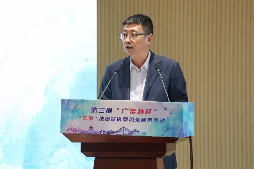 上海市律師協會理事、松江區律師行業黨委副書記、律工委主任傅偉軍對本次活動的前期賽程做了簡要回顧,并對決賽的賽制做了介紹。在本屆大賽的選手中,有一位是來自上海市崧澤戒毒所外派大隊的孫勇,因為參加所里的援疆任務,所以沒有辦法來到今天的決賽現場,他特別錄制了一段視頻,為所有的參賽選手送上了美好的祝福。