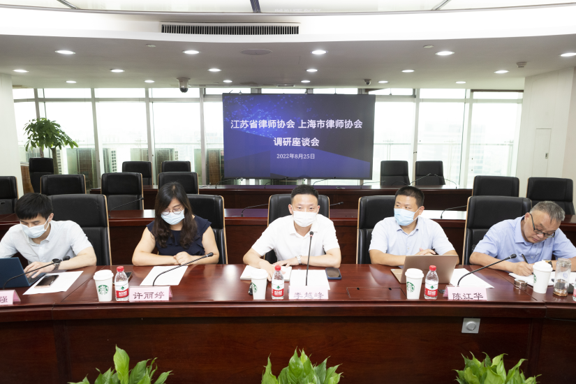 為溝通交流律師在“雙碳”背景下的機遇與挑戰(zhàn),2022年8月25日下午,江蘇律協(xié)政府法律顧問業(yè)務(wù)委員會由主任李越峰帶隊到訪上海律協(xié)開展座談。上海律協(xié)長三角律師業(yè)一體化促進(jìn)委員會主任朱小蘇、上海律協(xié)環(huán)境資源與能源業(yè)務(wù)研究委員會副主任顧準(zhǔn)等參加座談。