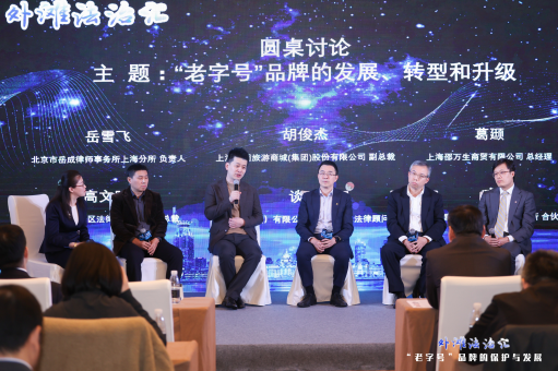 圓桌討論環(huán)節(jié)由黃浦律師工作委員會(huì)副主任岳雪飛主持,嘉賓們圍繞“老字號(hào)品牌的發(fā)展、轉(zhuǎn)型和升級(jí)”展開(kāi)熱烈的交流探討。埃森哲大中華區(qū)法律及政府事務(wù)總裁高文勝先生從老字號(hào)品牌的數(shù)字化轉(zhuǎn)型和升級(jí)分享了國(guó)際專業(yè)咨詢機(jī)構(gòu)的研究成果。上海豫園旅游商城(集團(tuán))股份有限公司副總裁胡俊杰先生分享了豫園股份近年來(lái)對(duì)旗下諸多老字號(hào)品牌進(jìn)行創(chuàng)新升級(jí),打造網(wǎng)紅國(guó)潮的經(jīng)驗(yàn)。上海邵萬(wàn)生商貿(mào)有限公司總經(jīng)理葛颋先生分享了老字號(hào)品牌在發(fā)展線上營(yíng)銷過(guò)程中遇到的品牌問(wèn)題。索尼(中國(guó))有限公司副總裁、總法律顧問(wèn)談?wù)橄壬鷦t從國(guó)際品牌角度對(duì)我國(guó)老字號(hào)品牌的傳承與發(fā)展給出了建設(shè)性建議。北京國(guó)楓(上海)律師事務(wù)所合伙人臧欣律師從證券資本市場(chǎng)律師的視角分享了老字號(hào)企業(yè)的升級(jí)發(fā)展之道。