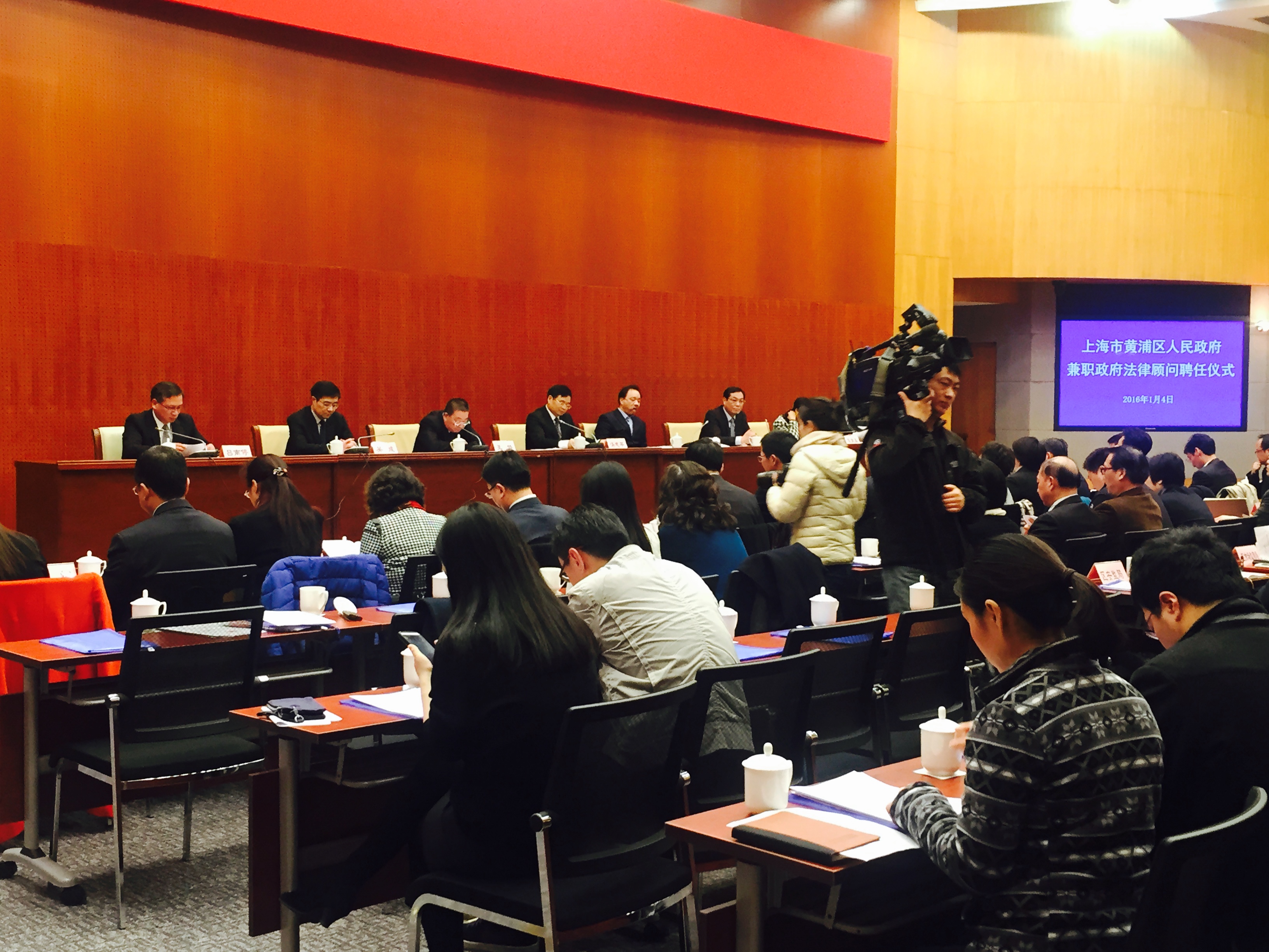 2016 年1月4日 下午,黃浦區(qū)隆重舉行兼職政府法律顧問(wèn)聘任儀式。由5名法學(xué)專家、15名執(zhí)業(yè)律師共20人受聘為黃浦區(qū)政府兼職政府法律顧問(wèn)。他們是:上海社會(huì)科學(xué)院法學(xué)研究所副研究員肖軍、上海仲裁委員會(huì)仲裁員陸燕、華東政法大學(xué)知識(shí)產(chǎn)權(quán)學(xué)院書記兼副院長(zhǎng)黃武雙、華東政法大學(xué)國(guó)際金融法律學(xué)院副院長(zhǎng)程金華、上海社會(huì)科學(xué)院社會(huì)學(xué)研究所副研究員臧得順、聯(lián)合律師事務(wù)所主任朱洪超、元達(dá)律師事務(wù)所主任黃仲蘭、漢商律師事務(wù)所主任王嶸、邦信陽(yáng)中建中匯律師事務(wù)所主任朱黎庭、金源方程律師事務(wù)所主任金纓、金茂律師事務(wù)所 http://lg.justice.gov.cn/!2b3be49507484673aa9810de667bd2cc/justice/主任毛惠剛、金茂凱德律師事務(wù)所創(chuàng)始合伙人李志強(qiáng)、顧躍進(jìn)律師事務(wù)所 http://lg.lawyers.org.cn/!2b3be49507484673aa9810de667bd2cc/justice/主任顧躍進(jìn)、岳成律師事務(wù)所 http://lg.justice.gov.cn/!2b3be49507484673aa9810de667bd2cc/justice/主任岳雪飛、邦信陽(yáng)中建中匯律師事務(wù)所合伙人杜愛(ài)武、建緯律師事務(wù)所 http://lg.lawyers.org.cn/!2b3be49507484673aa9810de667bd2cc/justice/合伙人曹珊、康達(dá)律師事務(wù)所合伙人游炯、金茂凱德律師事務(wù)所 http://lg.justice.gov.cn/!2b3be49507484673aa9810de667bd2cc/justice/合伙人沈琴、金茂律師事務(wù)所 http://lg.justice.gov.cn/!2b3be49507484673aa9810de667bd2cc/justice/合伙人吳榮良、滬南律師事務(wù)所 http://lg.justice.gov.cn/!2b3be49507484673aa9810de667bd2cc/justice/律師陳紅春。法律顧問(wèn)團(tuán)將充分發(fā)揮專業(yè)優(yōu)勢(shì),及時(shí)為黃浦區(qū)政府提供高效的法律服務(wù)。法律顧問(wèn)團(tuán)將充分發(fā)揮專業(yè)優(yōu)勢(shì),及時(shí)為黃浦區(qū)政府提供高效的法律服務(wù)。
