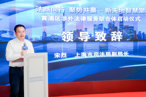 6月5日下午,黃浦區舉行了涉外法律服務聯合體啟動儀式。上海市司法局副局長宋烈、黃浦區副區長王槐攜手按下啟動鍵,標志著黃浦區涉外法律服務聯合體正式揚帆起航。長三角部分市區司法局領導,區人民法院、區人民檢察院、區各相關委辦局領導,上海國際仲裁中心、華東政法大學相關負責同志,以及各企業、法律服務機構代表參加了此次活動。
