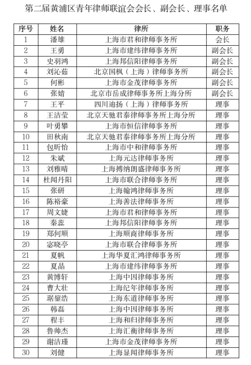 附第二屆黃浦區青律聯、女律聯會長、副會長、理事名單: