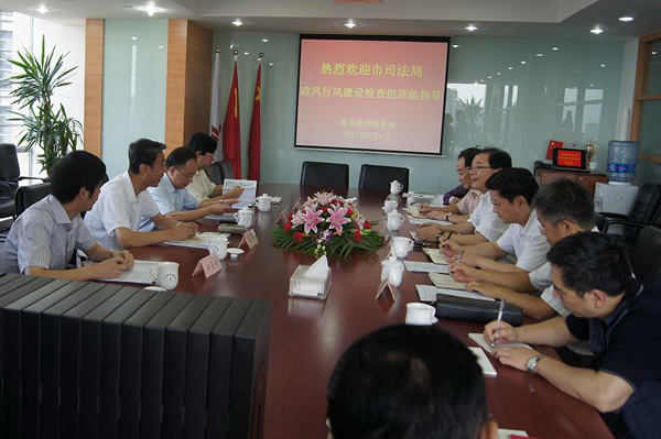 9月6日下午,上海市司法局紀委書記魏玉琦、市公協副秘書長陳繼軍、市局監察室副主任麻漢云在徐匯區司法局徐文泉局長陪同下,來所檢查行風建設工作。
