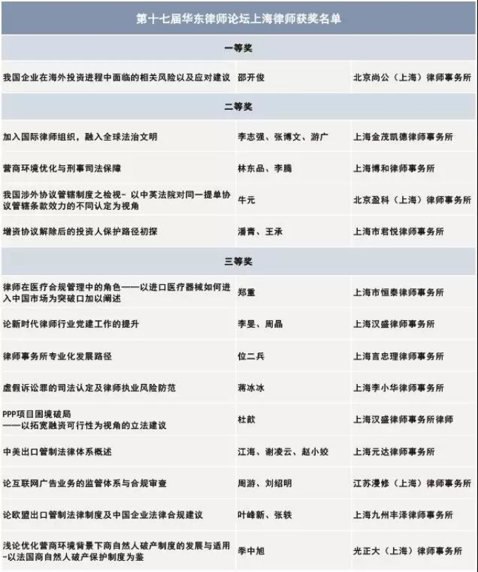 上海律師榮獲一等獎?wù)撐?篇、二等獎?wù)撐?篇、三等獎?wù)撐?篇。