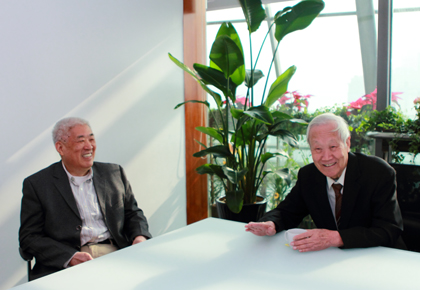 王文正老會長(右)一直關(guān)心金茂的成長