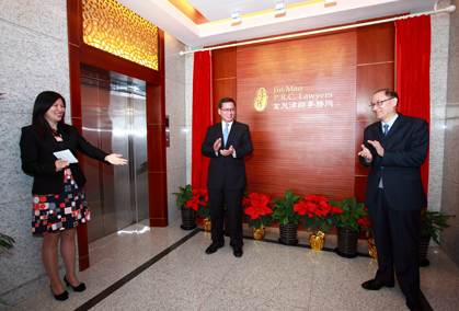 在全體嘉賓和事務(wù)所員工的熱烈掌聲中,呂南停副區(qū)長和翟世祺書記共同揭開了金茂律師事務(wù)所新址的帷幕。