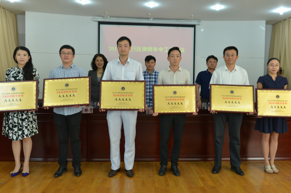 會議通報了2018年閔行區(qū)律師事務(wù)所規(guī)范化建設(shè)檢查評估情況、律師類投訴情況、律師信息管理平臺使用運作情況以及區(qū)律師行業(yè)黨建工作情況,解讀了《閔行區(qū)關(guān)于加快推進律師業(yè)發(fā)展的實施意見》等三個文件,部署了律師調(diào)解工作,并向區(qū)律師事務(wù)所規(guī)范化建設(shè)5A級律師事務(wù)所授牌。區(qū)司法局黨委副書記、律師行業(yè)黨委書記周信根宣讀第三屆“閔行區(qū)優(yōu)秀青年律師”表彰決定并進行了頒獎。