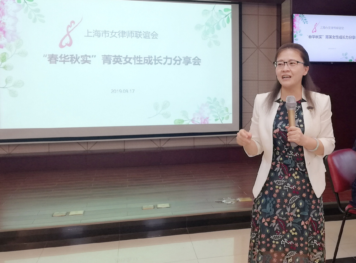 2019年9月17日下午,上海市第十屆女律師聯誼會第一期“春華秋實”活動在巾幗園舉行。上海市律師協會副會長、上海市女律師聯誼會會長鄒甫文,上海市女律師聯誼會副會長時軍莉、沈岱青、岳雪飛,秘書長張秀華出席此次活動。本次活動由副秘書長胡曉萍主持,50余名女律師參加。