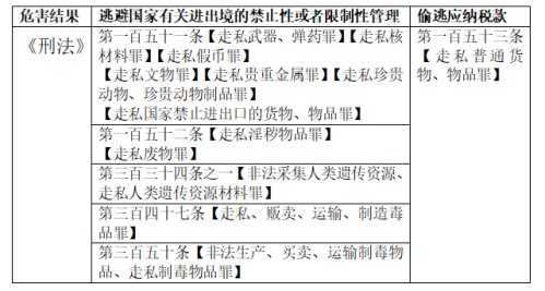 通過上述梳理與分析可按行為的危害結果將走私犯罪分為兩類,詳見下表: