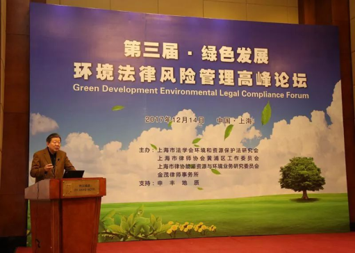 12月14日下午,由上海市律師協會黃浦律師工作委員會、上海市法學會環境和資源保護法研究會、上海市律協能源資源與環境業務研究委員會和金茂律師事務所共同主辦的第三屆“綠色發展·環境法律風險管理高峰論壇”在上海錦江飯店小禮堂成功舉行。來自上海市法學會、高校、法院、檢察院、環保監管部門、大型國企、上市公司、跨國公司、律師界等共200多位代表參加了本次論壇。