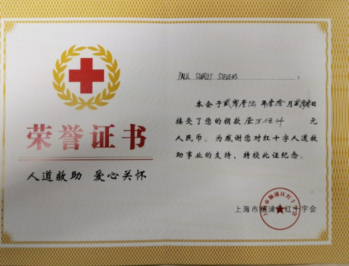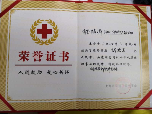 當我們詢問保羅.史蒂文斯先生定向捐贈的心路歷程,他說:“我喜歡上海,熱愛在這里工作與生活。感謝這些勇敢的醫生,希望他們一切平安。我們是一家人!”(I like Shanghai, and love working and living here. Thanks to these brave doctors, and I hope they are all safe. We are a family!)