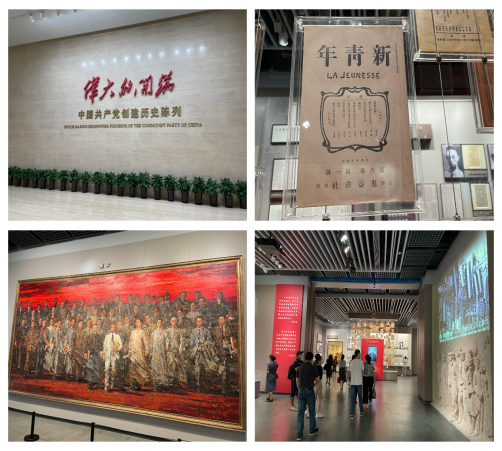 紀(jì)念館展覽主要包括五個部分,第一部分“前赴后繼、救亡圖存”,第二部分“民眾覺醒、主義抉擇”,第三部分“早期組織、星火初燃”,第四部分“開天辟地、日出東方”,第五部分“砥礪前行、光輝歷程”。跟著展覽館的指示牌,黨員同志們一一進行參觀。以文物、圖畫、雕塑等主要素材為依托,借助情景重現(xiàn)、多媒體科技等技術(shù),黨從誕生到發(fā)展壯大這一波瀾壯闊的歷史展現(xiàn)在黨員同志們面前。