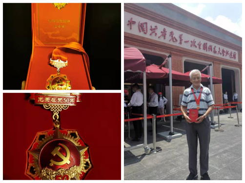 黨支部靳新用同志作為黨齡超過50年的老同志,此次還攜帶了“光榮在黨50年”紀(jì)念獎?wù)聦iT在紀(jì)念館合影留念。他激動的表示,能夠在黨生日前一天參觀留影是非常具有紀(jì)念意義的事情。